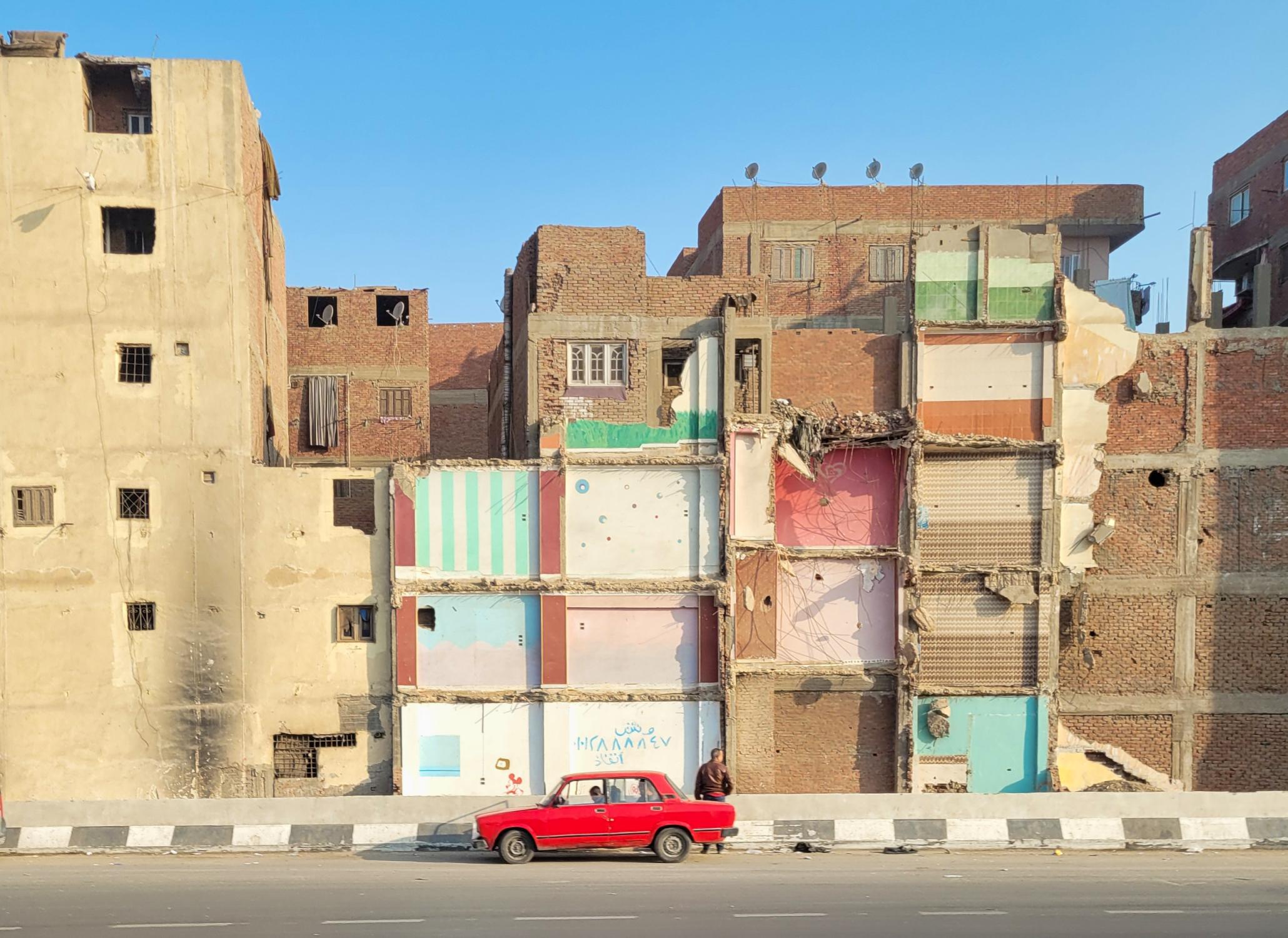 Many of Cairo’s buildings are unfinished, because their owners have to pay higher taxes when they are complete. This makes me think of Penelope’s weaving in Homer’s Odyssey, constantly in progress, and this is not the only point of contact between the city and Greece: Cairo owes its name to Kairòs, a Greek word meaning ‘at the right time’.