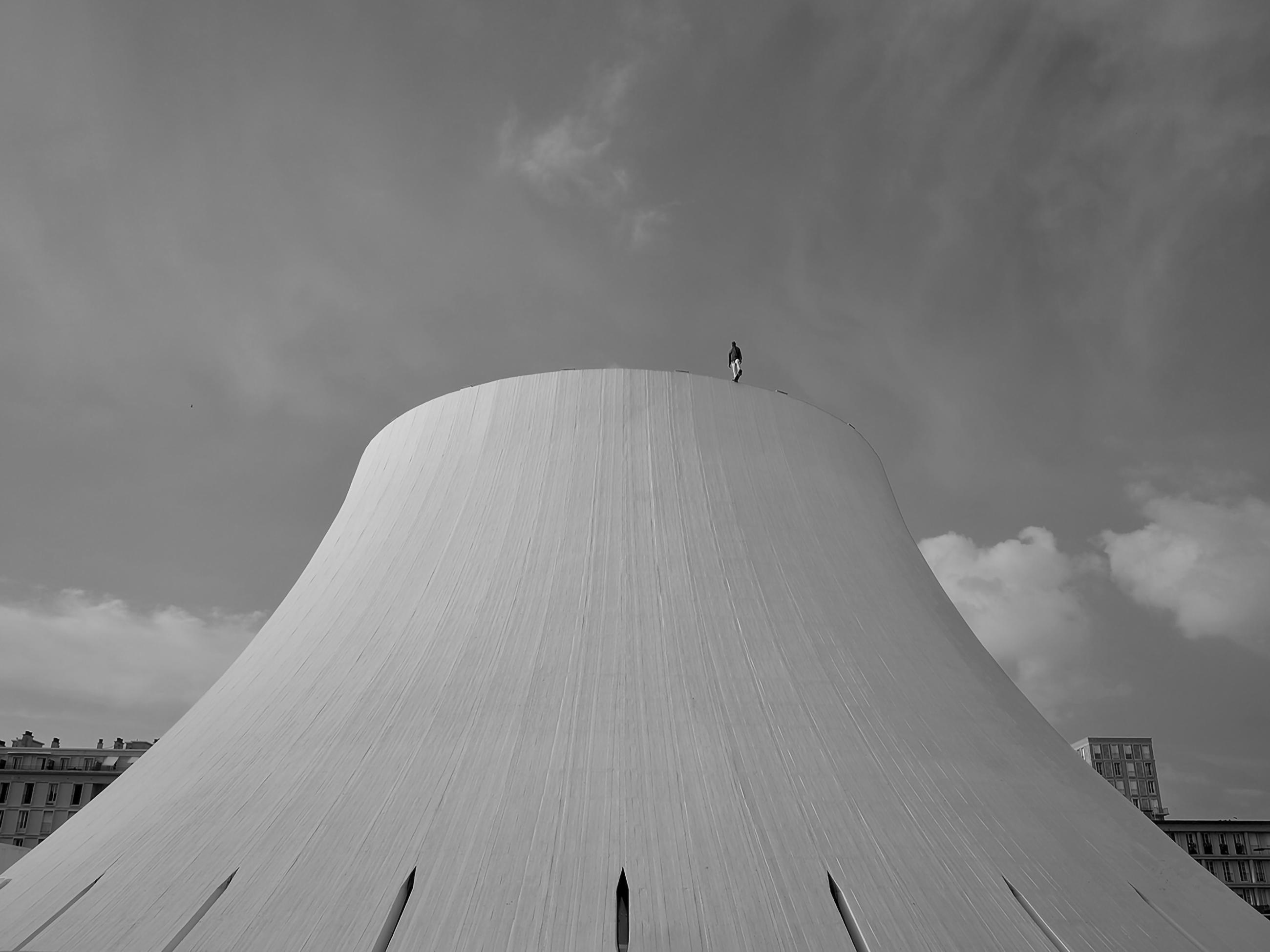 This building, by the architect Oscar Niemeyer, is called ‘Le Volcan’ (The Volcano). It offers great perspectives from all angles, but the skateboarder sculpture, by the artist Mark Jenkins, makes this photograph more intriguing.